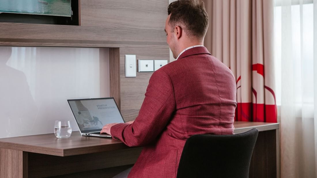 Ideal for corporate travellers or couples, the Novotel Melbourne Glen Waverley's Deluxe King Hotel Room has everything needed for a successful business trip or relaxing escape. Complete with a large workstation, King size bed, NEXT furnishings, iPod docking station and a 32" flat screen TV, this hotel room offers comfort, space and convenience throughout your stay.