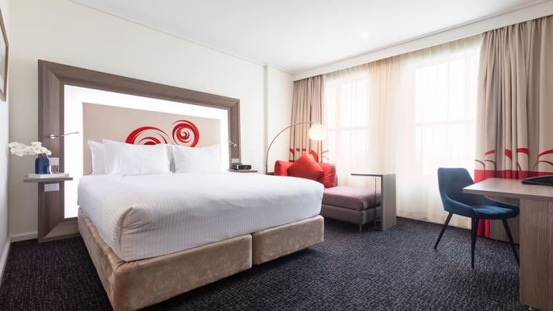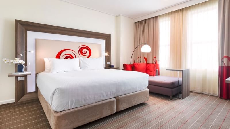 Ideal for corporate travellers or couples, the Novotel Melbourne Glen Waverley's Deluxe King Hotel Room has everything needed for a successful business trip or relaxing escape. Complete with a large workstation, King size bed, NEXT furnishings, iPod docking station and a 32" flat screen TV, this hotel room offers comfort, space and convenience throughout your stay.