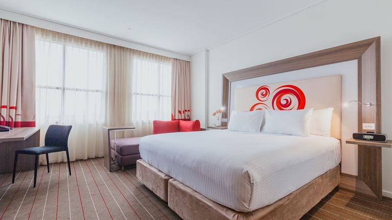 The Novotel Melbourne Glen Waverley hotel's Superior King Hotel Room is ideal for a couple’s escape, single traveller or guests seeking corporate accommodation in Melbourne. Complete with a large workstation, King size bed, NEXT furnishings, iPod docking station and a 32" flat screen TV, this hotel room offers comfort, space and convenience throughout your stay.